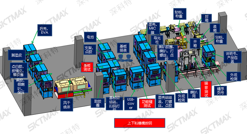 ? ? ? ?深科特為福摩斯托提供的“SONY高端產品全自動化產線”方案,融合行業領先的非標設計以及工業相機檢測等核心技術,實現產品全自動化組裝、測試和包裝,涵蓋 SONY音響的全自動上蓋、自動組裝、自動打螺絲、自動鐳射、自動貼標、自動音頻測試、自動功能測試、自動包裝等制造環節。該線所有設備全部由深科特自動化團隊獨立設計、調試、運維。